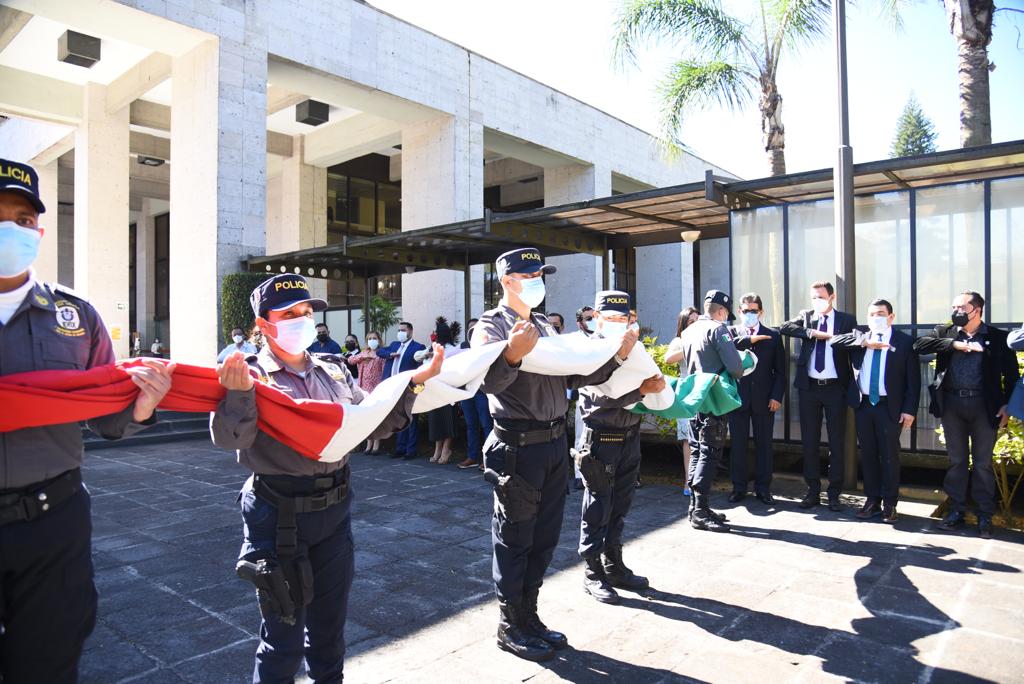 Agregó que, junto al Escudo y al Himno Nacional, la Bandera es uno de los símbolos que identifican a las y los mexicanos y sinónimo de identidad y soberanía.