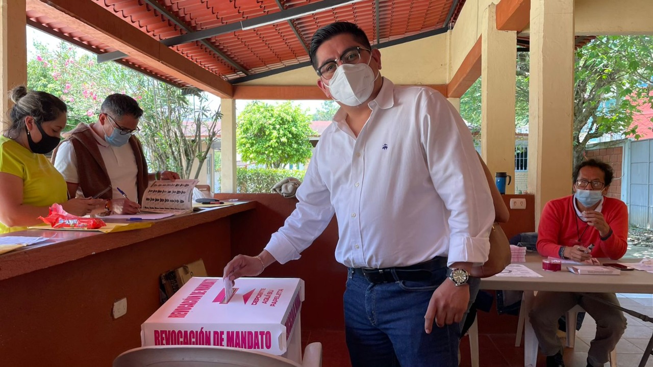 Xalapa, Ver.- Al celebrar que es un hecho histórico para la democracia en Veracruz y en México, el Delegado Estatal en funciones de Presidente del Movimiento de Regeneración Nacional (Morena), Esteban Ramírez Zepeta, acudió a emitir su voto en la primera consulta de revocación de mandato.