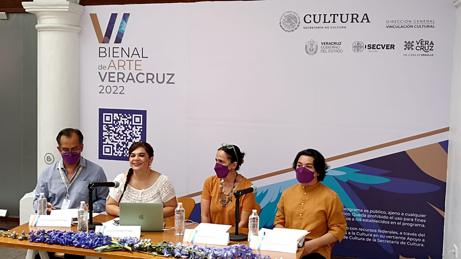 Xalapa, Veracruz.- Esta mañana, desde el patio central de la Galería de Arte Contemporáneo de Xalapa (GACX) se presentó a través de una rueda de prensa la convocatoria para la VI Bienal de Arte Veracruz 2022. Estuvieron presentes Silvia Alejandre Prado, Directora General del Instituto Veracruzano de Cultura (IVEC) , Sergio Rocetes, subdirector de Artes y Patrimonio, Rodolfo Salmerón, director del Jardín de las Esculturas y coordinador de la Bienal de Arte Veracruz y la artista plástica Maribel Portela.