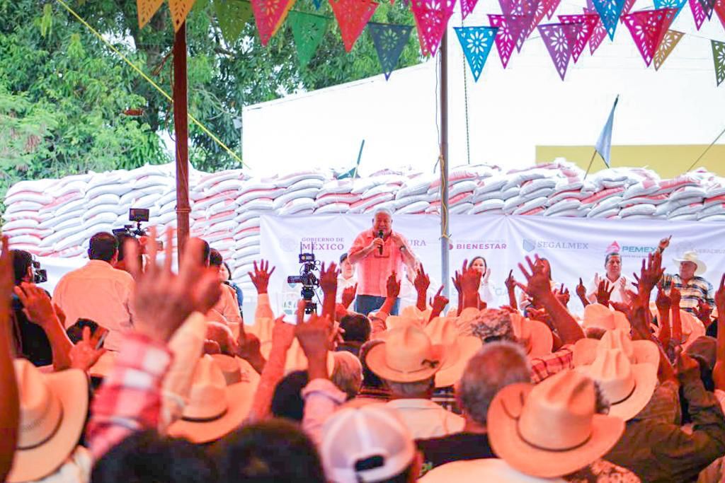Con la entrega de 43 mil 865 toneladas de fertilizantes de manera gratuita a un total de 83 mil 118 beneficiarios, inicia en Veracruz la entrega formal de fertilizantes a los productores de maíz y frijol incorporados al programa Producción para el Bienestar, cuyo acto fue encabezado por el Delegado de Bienestar, Manuel Huerta Ladrón de Guevara.