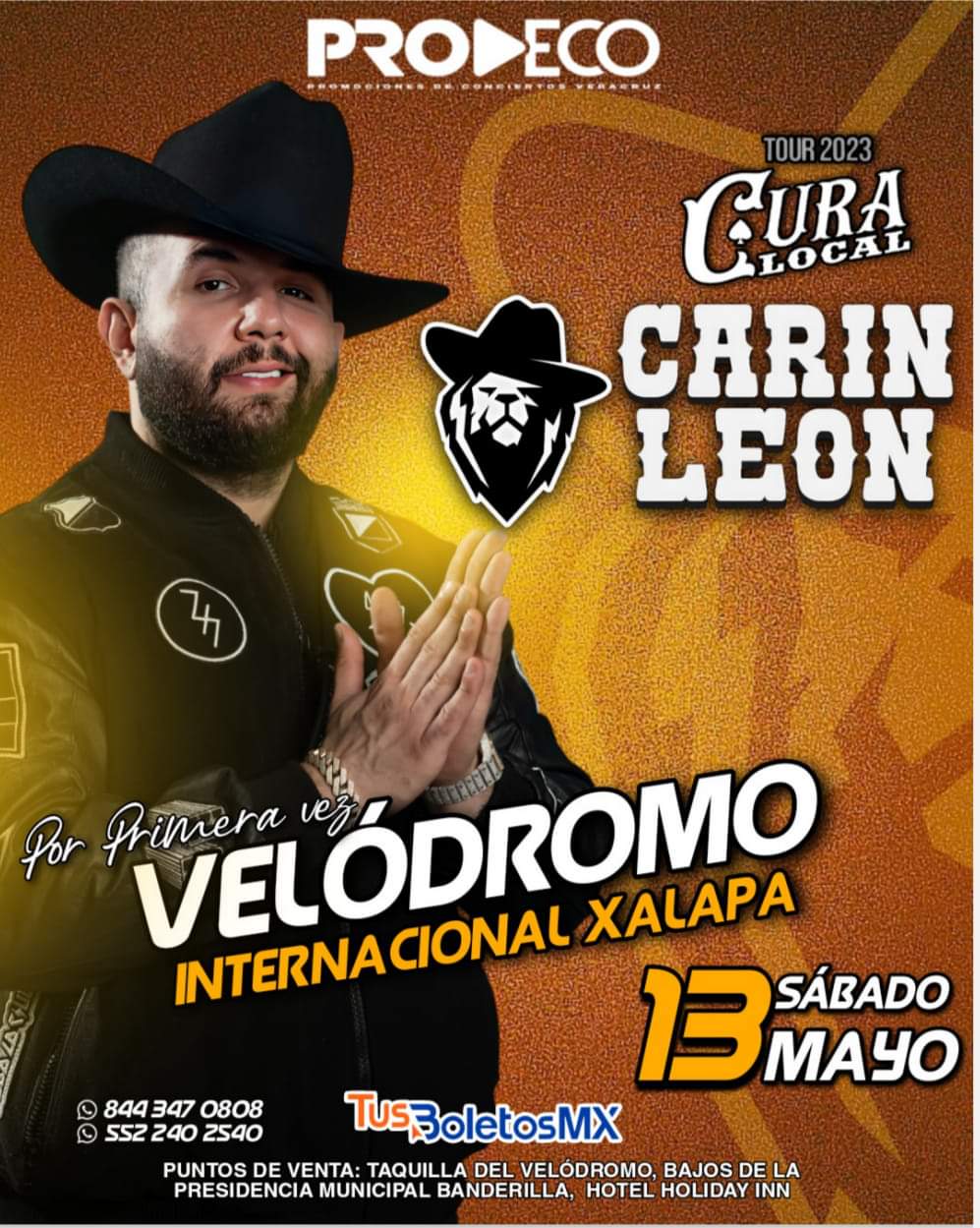 El gran exponente del regional mexicano Carin León llega al Velódromo Internacional de Xalapa el próximo sábado 13 de mayo, con su Tour 2023 Cura Local.