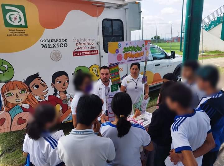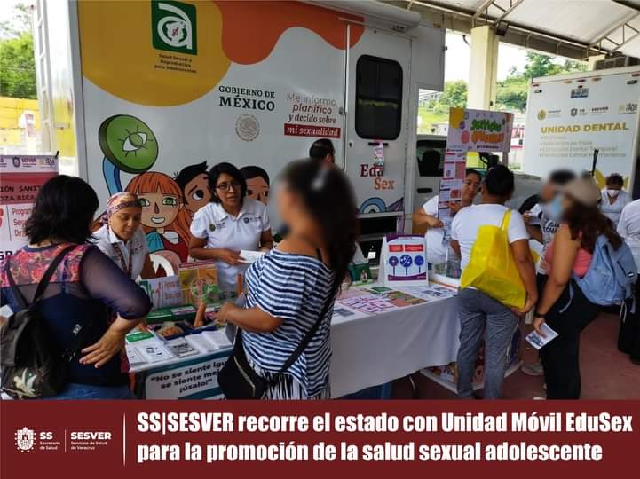 Con la Unidad Móvil Edusex, los Servicios de Salud de Veracruz, en coordinación con autoridades municipales y otras dependencias del Estado, acude a ferias de salud, escuelas y eventos; brindando información a adolescentes, jóvenes, profesores, padres y madres de familia, sobre prevención del embarazo, enfermedades de transmisión sexual, uso correcto del condón femenino y masculino, identificación de la violencia, entre otros.