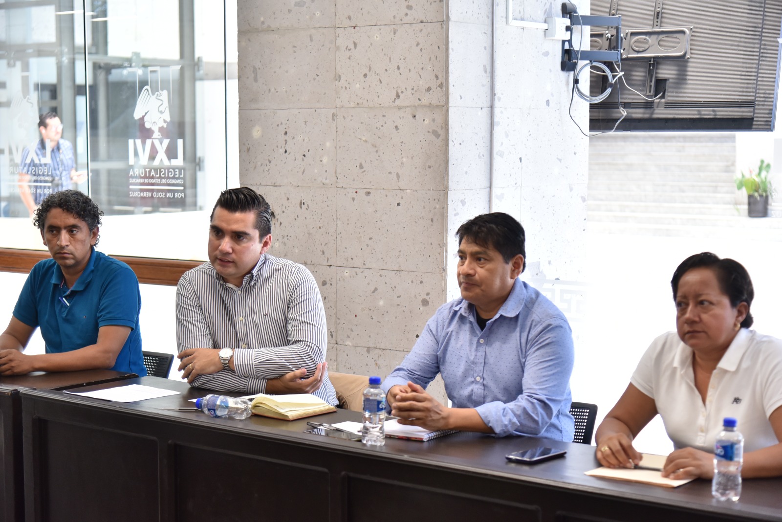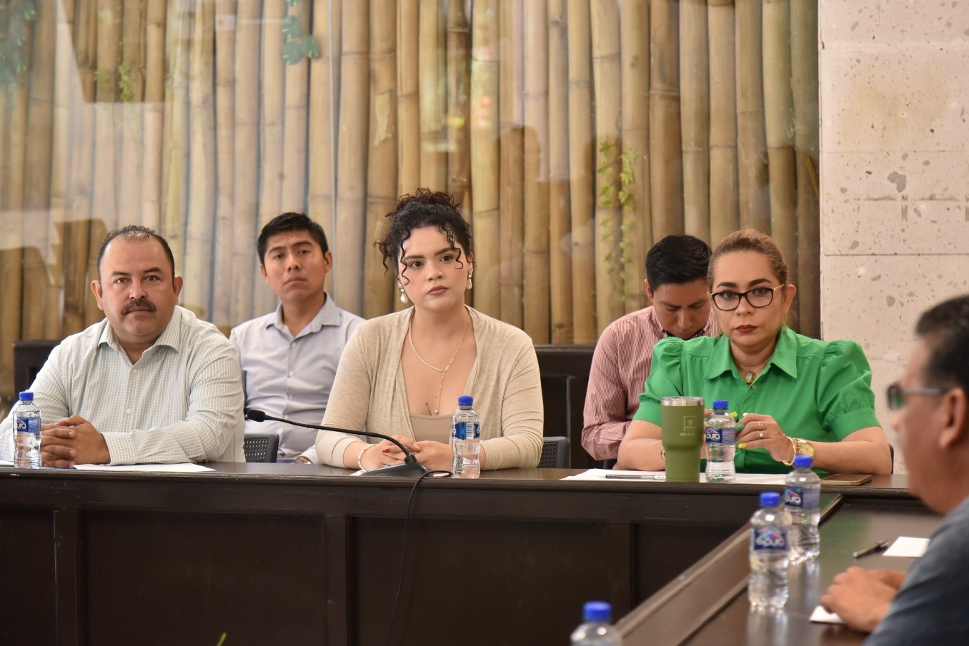 En la reunión, iniciada a las 12:00 horas, la diputada Itzel Yescas Valdivia dio la bienvenida a los funcionarios del ayuntamiento de Cuichapa: director de Obras Públicas, José Luis García García; director Jurídico, José Ignacio Peña Nieves, y a la particular de la Presidencia, Karina Juárez Félix. Además, a la parte que representa al municipio de Cuitláhuac: el director Jurídico, Alejandro Montalvo Sánchez, y el secretario del Ayuntamiento, Alejandro del Río Saldaña.