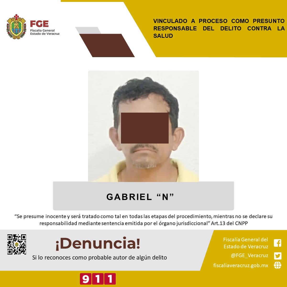 Coatzacoalcos, Ver; 1° de agosto del 2023.- La Fiscalía Regional Coatzacoalcos obtuvo vinculación a proceso en contra de Gabriel “N” como presunto responsable del delito contra la salud.