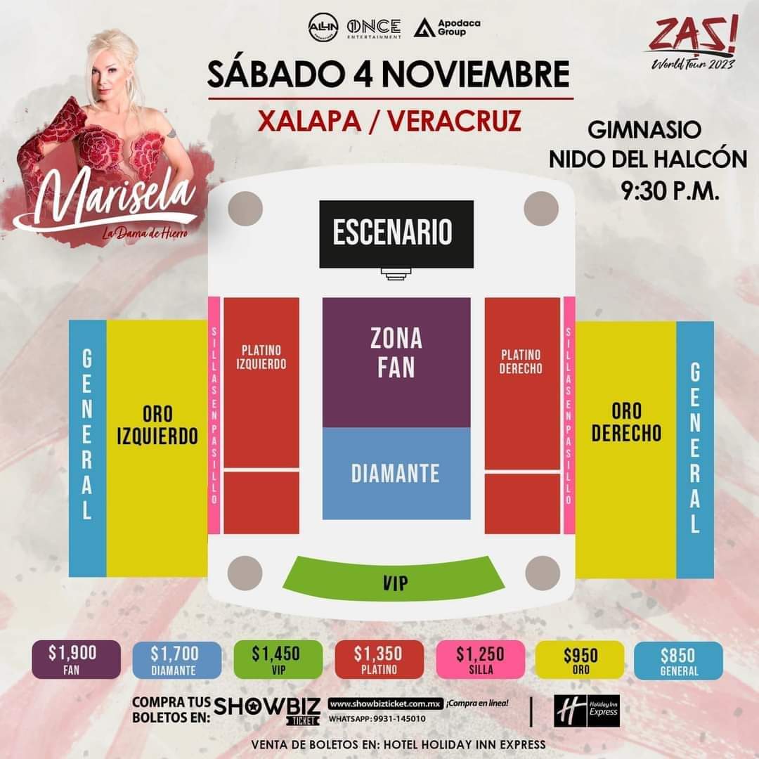 La venta de boletos está disponible en la taquilla del Hotel Holiday Inn Espress y en línea www.showbizticket.com.