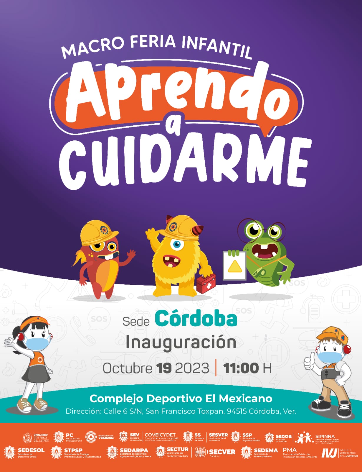 Este evento, dirigido a niñas, niños y adolescentes junto con sus familias y personal docente, será de acceso libre y gratuito, y se llevará a cabo del 19 al 22 de octubre en la ciudad de Córdoba, con un horario de 9:00 a 17:00 hrs, recibiendo a visitantes de los municipios de las altas montañas con actividades lúdicas y recreativas enfocadas a impulsar una cultura del autocuidado y la autoprotección.