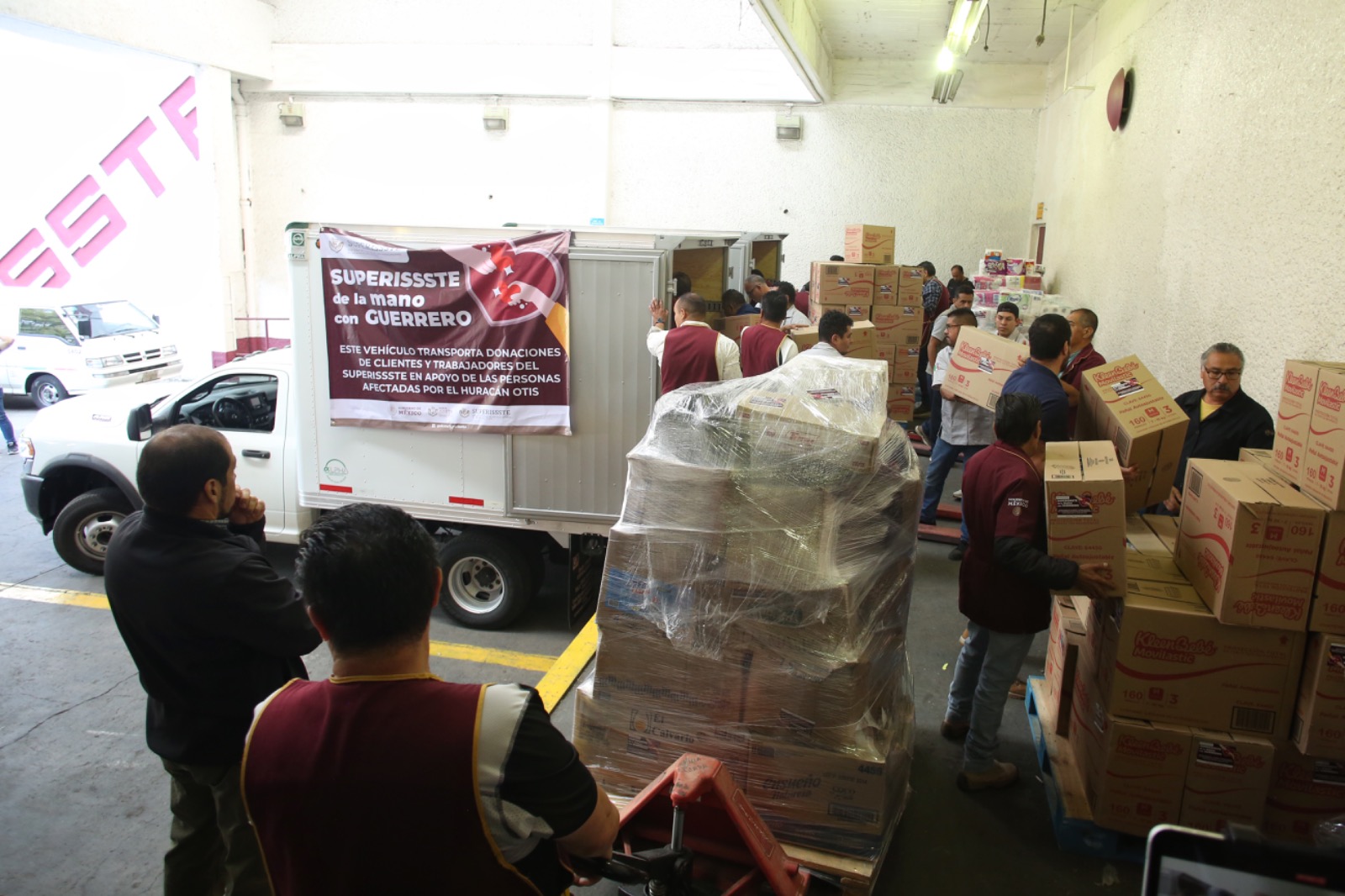Desde el Centro de Acopio de Superissste Villa Coapa de la Ciudad de México salieron aproximadamente 10 toneladas de víveres en los dos primeros vehículos hacia Acapulco.