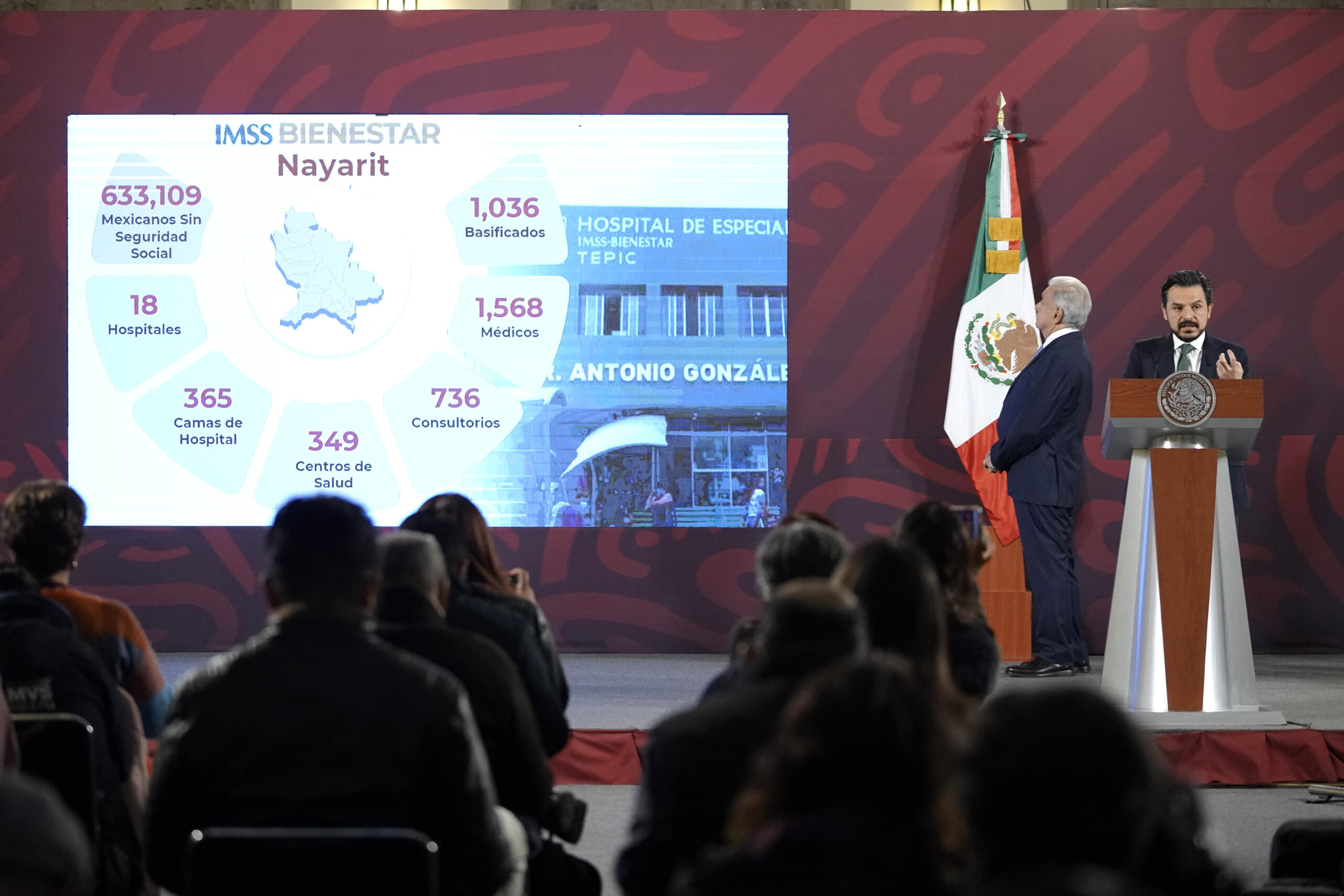Al detallar los avances por estado, informó que en Nayarit se cuenta con mil 568 médicos, de los cuales 807 son especialistas, lo que incluye todos los métodos de contratación: médicos cubanos, jubilados y quienes participaron en el proceso de reclutamiento. Se ha basificado a mil 36 trabajadores de la salud.