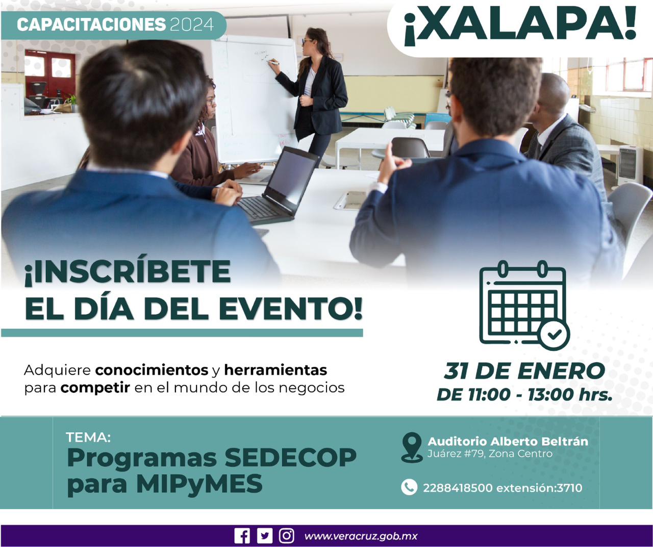 Xalapa, Ver.- Con el fin de brindar a los emprendedores y pequeños empresarios los conocimientos y herramientas para consolidar y hacer crecer sus negocios, el Ayuntamiento, a través de la Dirección de Desarrollo Económico, realizará el miércoles 31 de enero el curso de capacitación “Programas Sedecop para MIPyMES”.