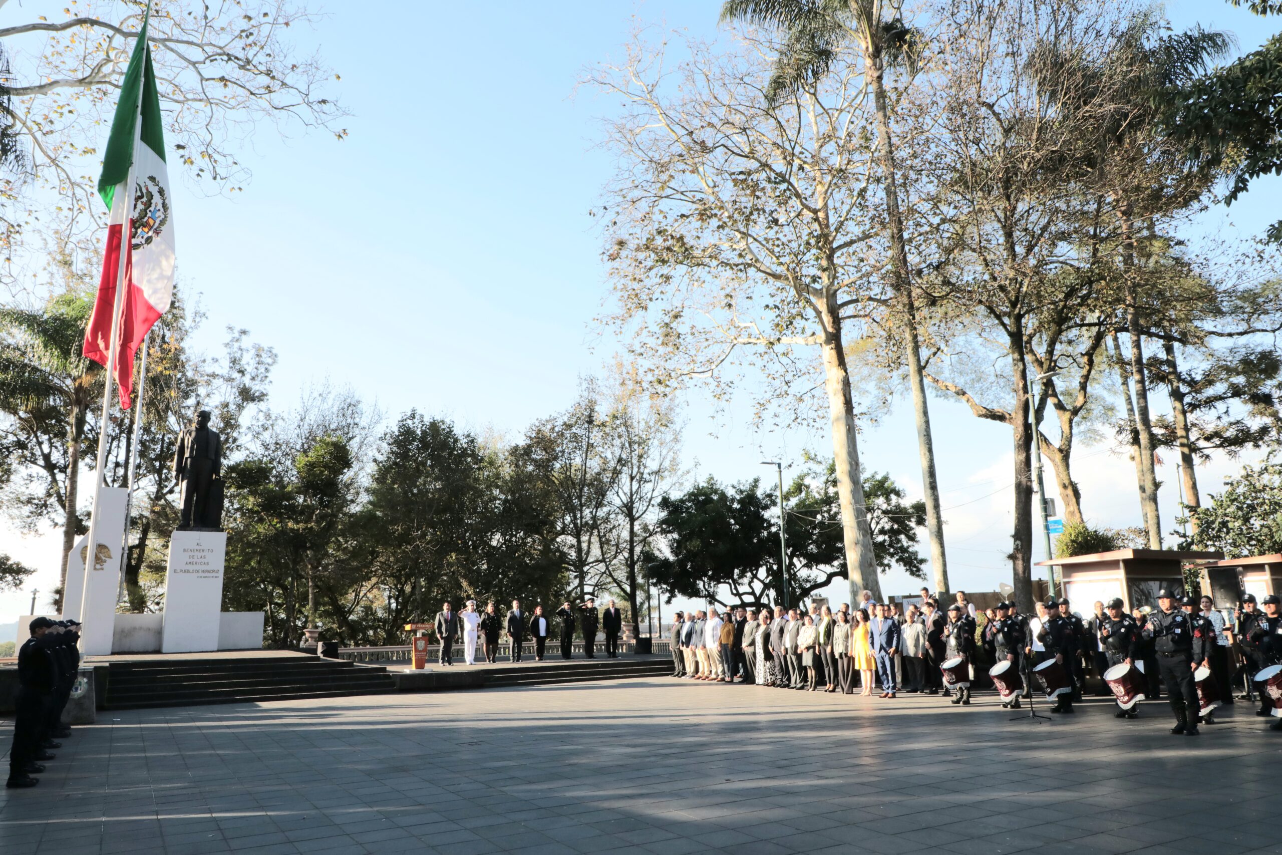 En la ceremonia conmemorativa participaron el Jefe de Estado Mayor de la 26/a Zona Militar, Octavio Martínez Velázquez; el comandante de la Brigada de la Policía Naval Armando Miguel Ojeda Reyes; el Coordinador Estatal de la Guardia Nacional en Veracruz, Vicente Dimayuga Canales y el Presidente Municipal de Xalapa, Ricardo Ahued Bardahuil.