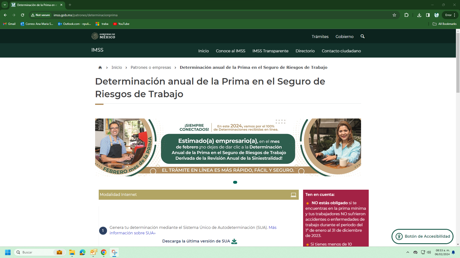 El Instituto Mexicano del Seguro Social (IMSS) en Veracruz Norte hace un atento recordatorio a los patrones para presentar la Determinación de la Prima del Seguro de Riesgos de trabajo, para el ejercicio 2024, la cual puede realizarse únicamente durante el mes de febrero.