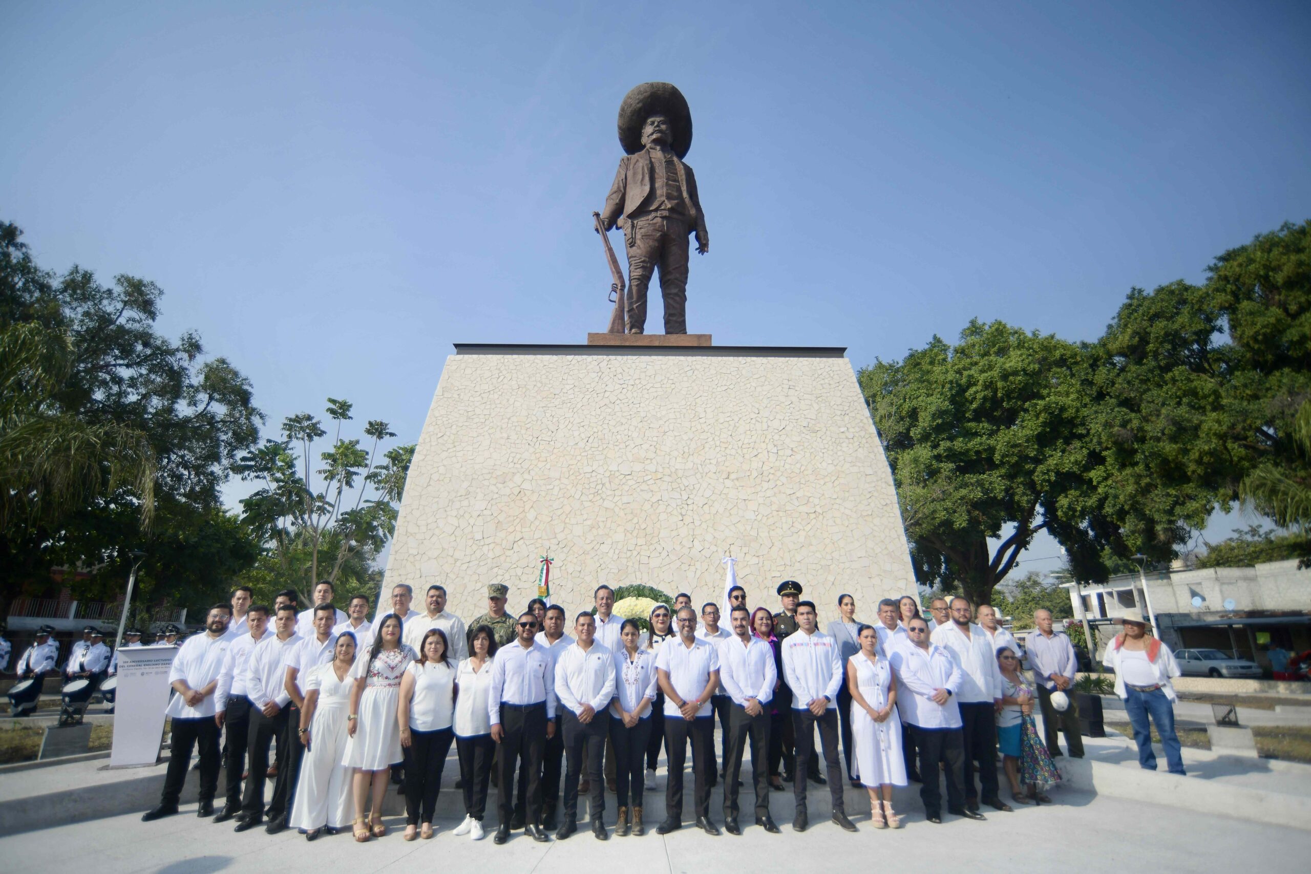 Posteriormente, al pie de la escultura de bronce más grande de México en memoria de quien comandó el Ejército Libertador del Sur, en el parque Tierra y Libertad de Rinconada, los servidores públicos montaron guardia de honor y depositaron ofrenda floral, con las notas del toque militar de Silencio.