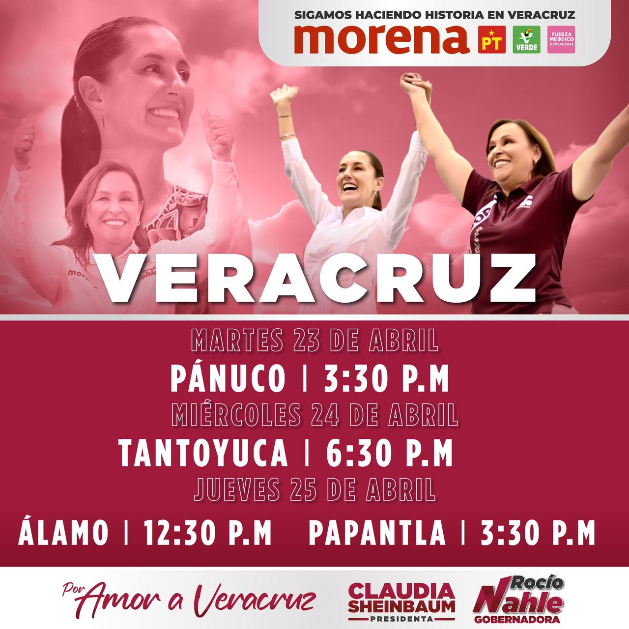 Esteban Ramírez Zepeta anticipó que ambas candidatas visitarán el miércoles el municipio de Pánuco, el jueves Tantoyuca, y el viernes estarán en Álamo y en Papantla, todos en el norte del estado de Veracruz.