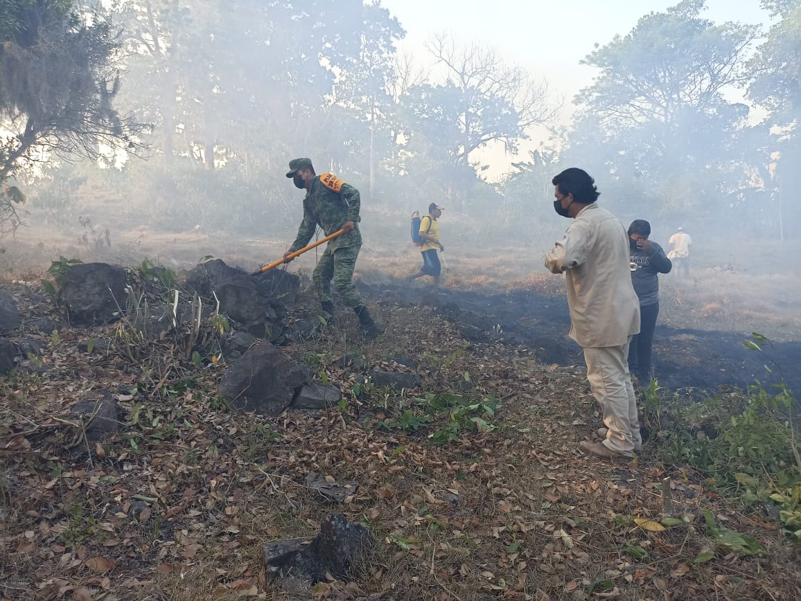 4 de junio de 2024, Vega de Alatorre, Ver.- Brigadas de SEDEMA, SEDENA, PC Estatal y municipal se coordinan con Bomberos Misantla y personas voluntarias en la atención al incendio forestal registrado en el cerro de Arroyo Grande Segundo.