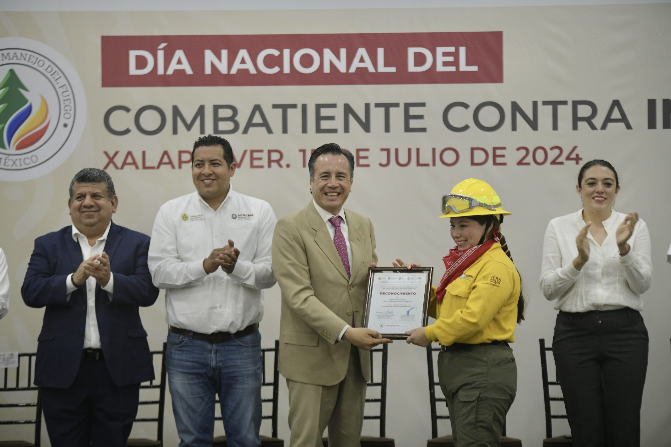 Xalapa, Ver., 15 de julio de 2024.- En el Día Nacional del Combatiente Forestal, Veracruz reconoció a las brigadas oficiales federales, estatales y municipales por su heroísmo, compromiso y dedicación para proteger bosques y comunidades de 217 incendios que consumieron 14 mil 793.31 hectáreas en el estado de enero a junio.