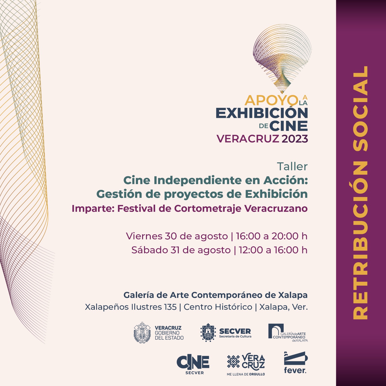 Para las personas interesadas en planificar y ejecutar proyectos de cine en sus localidades con enfoque social, se llevará a cabo el taller “Cine Independiente en acción. Gestión de proyectos de exhibición” los días viernes 30, a las 16:00 horas, y sábado 31 de agosto, a las 12:00 horas. Esta actividad busca orientar en lo relacionado a la gestión de proyectos de exhibición de cine independiente y resaltar la importancia de la incidencia social a través del cine, capacitando a los asistentes para utilizar las producciones audiovisuales como herramientas de cambio. Este taller será impartido por dos reconocidos cineastas de la escena veracruzana: Erika Benítez y Milton Muratalla.