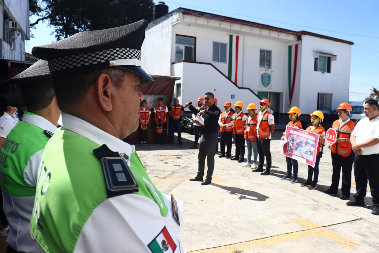 Xalapa, Ver..- En el marco del Día Nacional de Protección Civil y en conmemoración de los sismos que han marcado la historia reciente de nuestro país, el personal de la Dirección General de Tránsito y Seguridad Vial (DGTSV) participó en la plática de orientación y concientización con el objetivo de fomentar medidas de autoprotección ante desastres naturales.