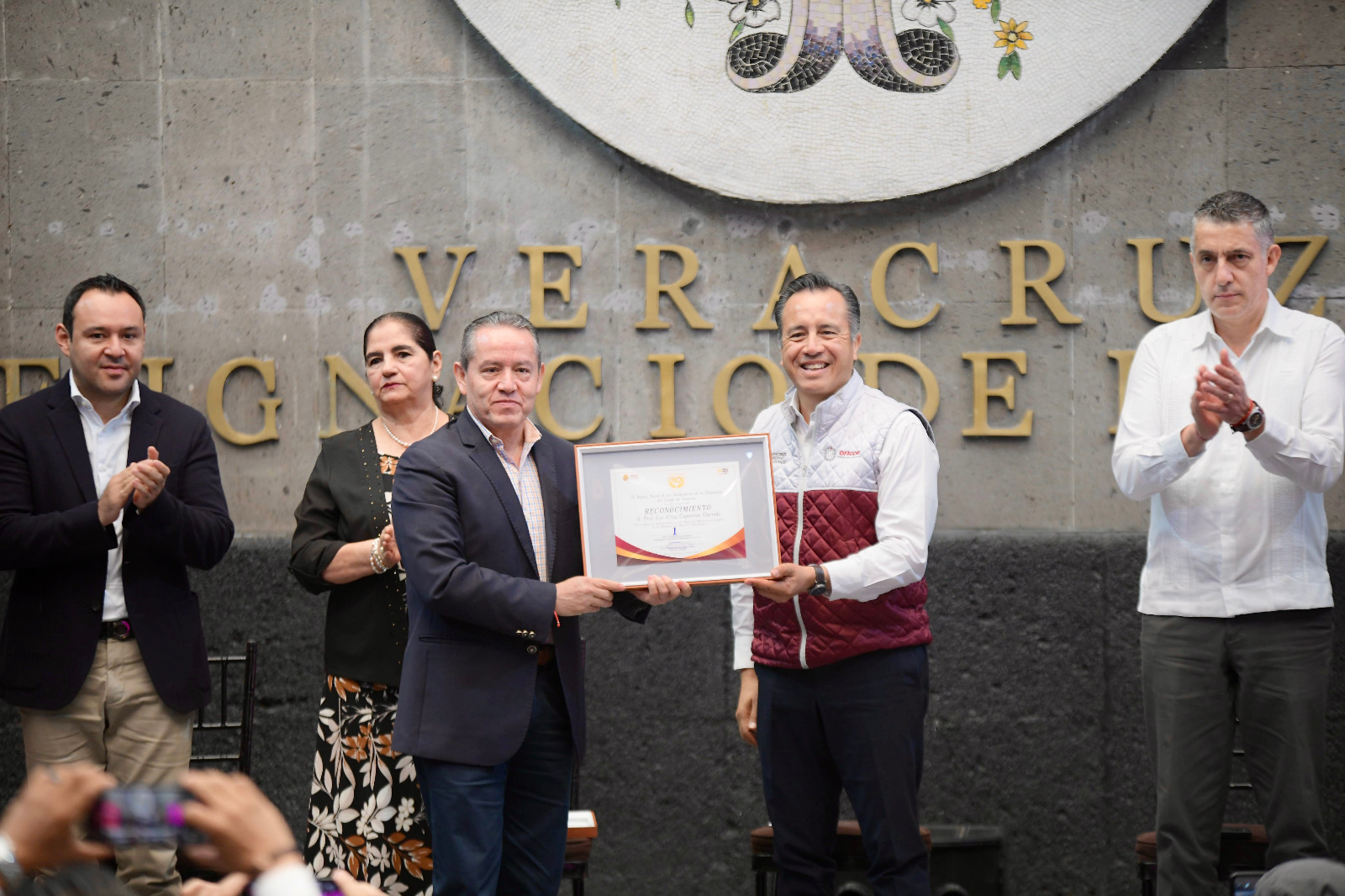 Desde la sede del Poder Ejecutivo, el Gobernador entregó reconocimientos por 50 años de servicio a Celia Quiñones Guerra; también a consejeros y exconsejeros, así como de manera previa a María Zenaida Rocío Albino Barrales, con más de 45 años de trayectoria administrativa en la institución.