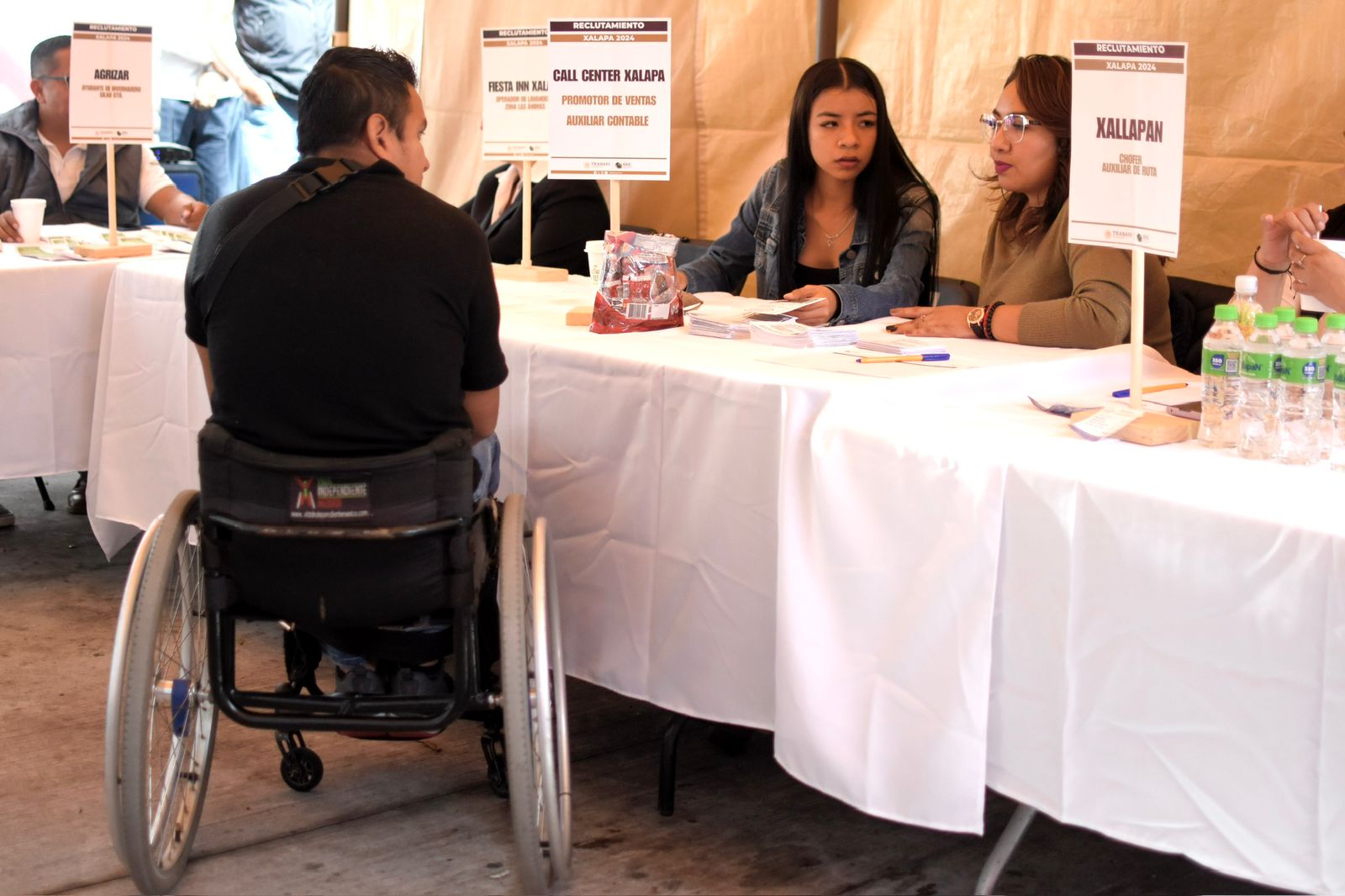 Plazas de promotor de ventas, auxiliar contable, policía estatal, médico, chofer, residente de obra, barista, cocinero, hostess con sueldos desde los 7 mil 500 hasta los 15 mil pesos mensuales, todas las prestaciones de la ley y apertura a adultos mayores o personas con discapacidad, fueron algunas de las expuestas en el evento.