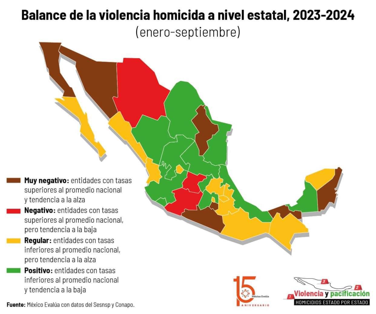 «Monitoreamos mes a mes la tasa de homicidios dolosos por cada 100 mil habitantes en cada estado del país, con el fin de identificar áreas que requieren atención prioritaria en materia de seguridad ciudadana», señaló México Evalúa en su informe.