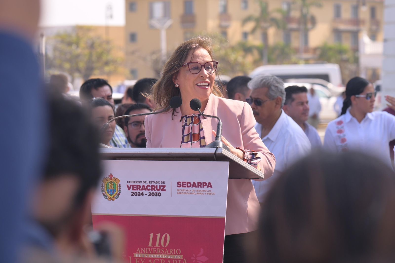 Veracruz, Ver..- La gobernadora Rocío Nahle García y organizaciones campesinas conmemoraron el 110 aniversario de la promulgación de la Ley Agraria, destacando suimportancia histórica para la justicia social y el reparto agrario en México.