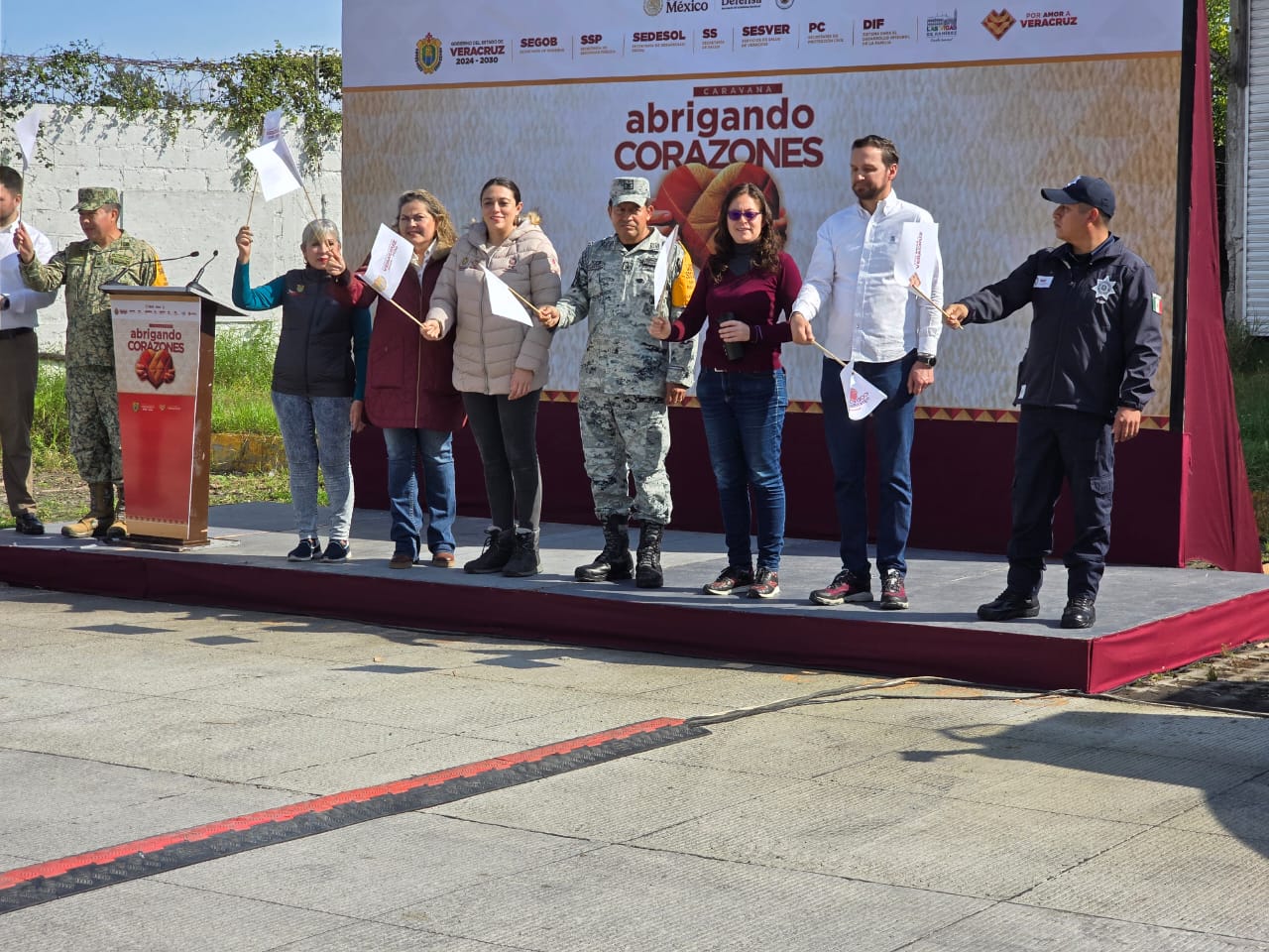 Xalapa, Ver.- La secretaria de Protección Civil del Estado, Guadalupe Osorno Maldonado puso en marcha el programa “Abrigando Corazones”, dando el “Banderazo de salida” del contingente de apoyo que se desplazó de la Torre “Orgullo Veracruzano” en Xalapa al centro ecoturístico “Bosque Ciclo Verde”, en Las Vigas de Ramirez, Veracruz, para brindar apoyo a los habitantes afectados por las bajas temperaturas.