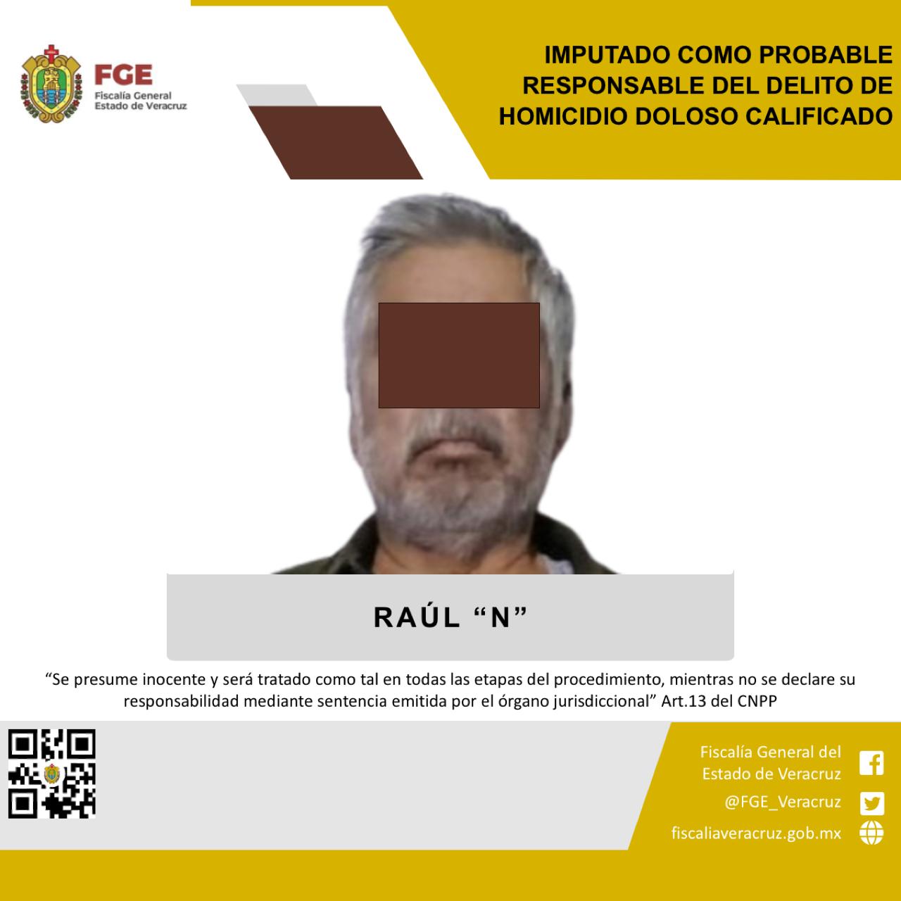 Ok Papantla, Ver.- La Fiscalía General del Estado informa que, a través de la Fiscalía Regional Tuxpan, realizó imputación en contra de Raúl“N”, como probable responsable de delito de homicidio doloso calificado, cometido en agravio de la víctima identificada con las iniciales J.L.R.G.