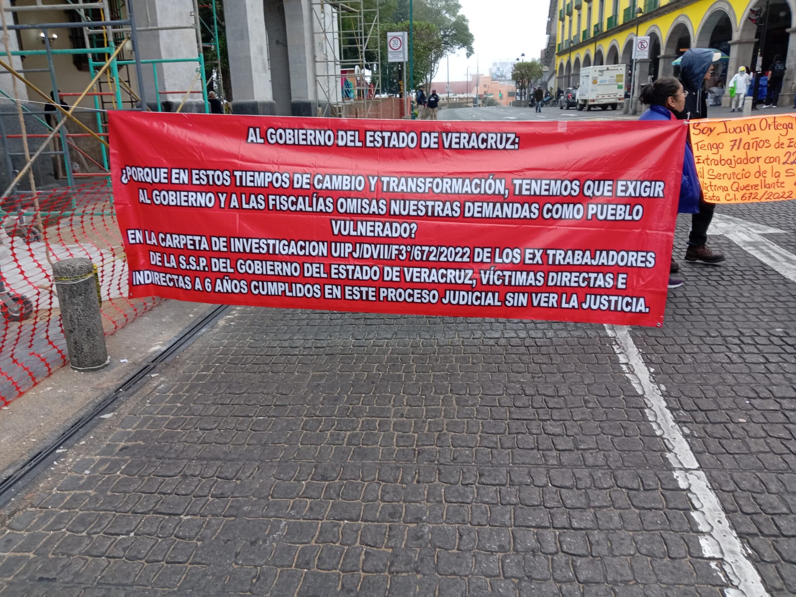 Durante la manifestación los inconformes portaban en sus manos cartulinas, así como lonas grandes donde exigían justicia, ya que, señalan, “no hay un verdadero Estado de Derecho en la entidad veracruzana, para los más vulnerables, extrabajadores de la SSP de la tercera edad no hay justicia”.