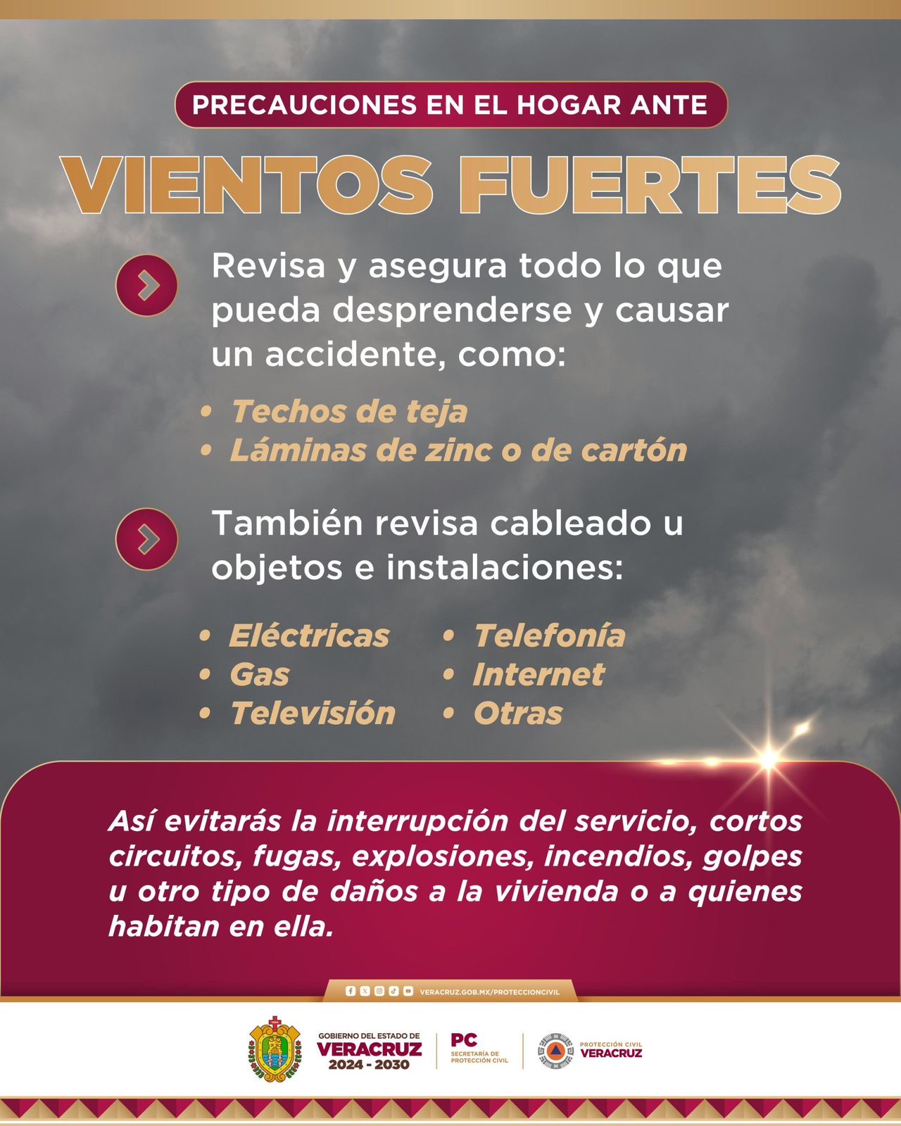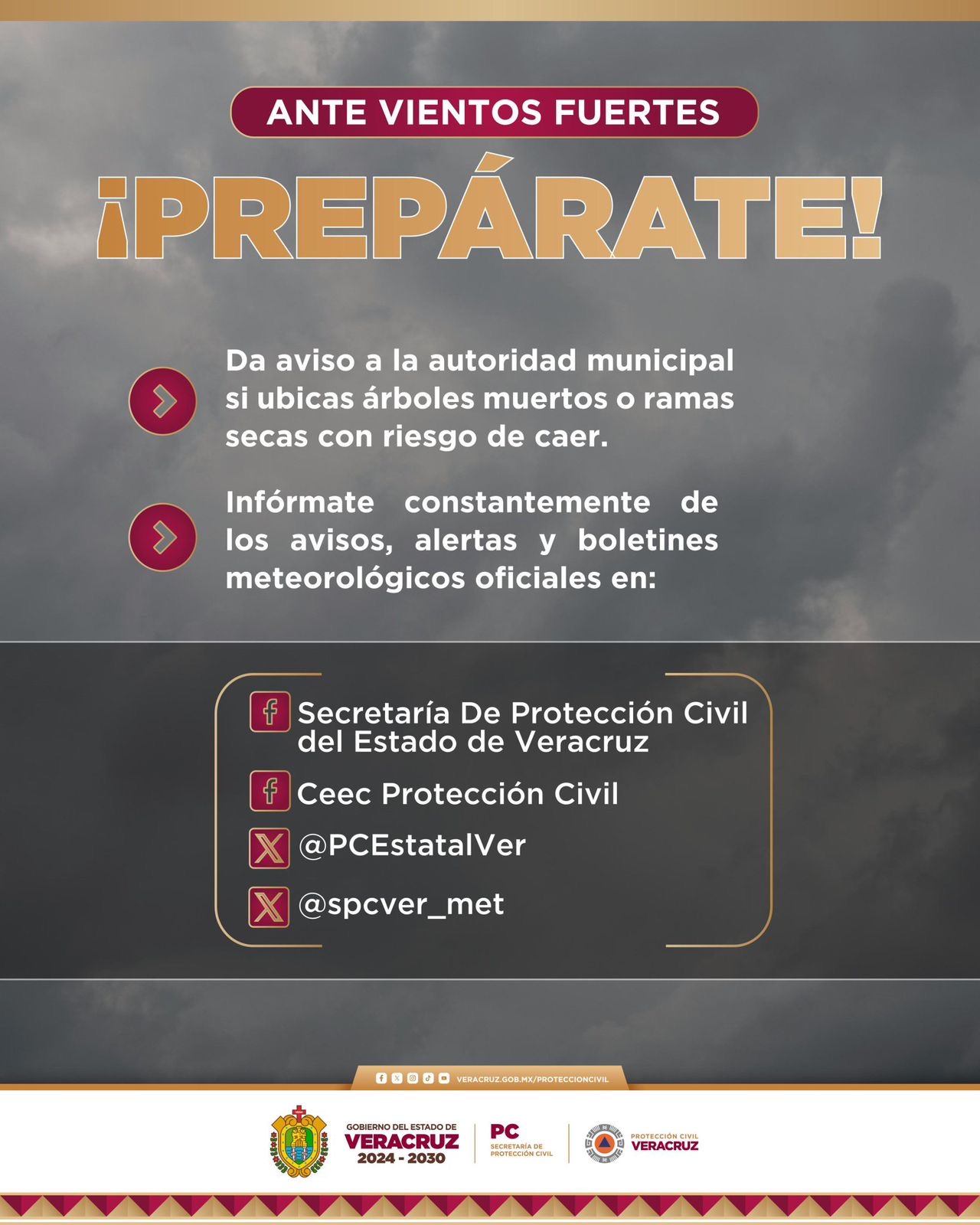 Este martes se presentará evento de norte con rachas de 100 a 120 kilómetros por hora en la zona de costa y de 45 a 60 kilómetros por hora en la región entre Xalapa, Naolinco, Misantla y valle de Perote.