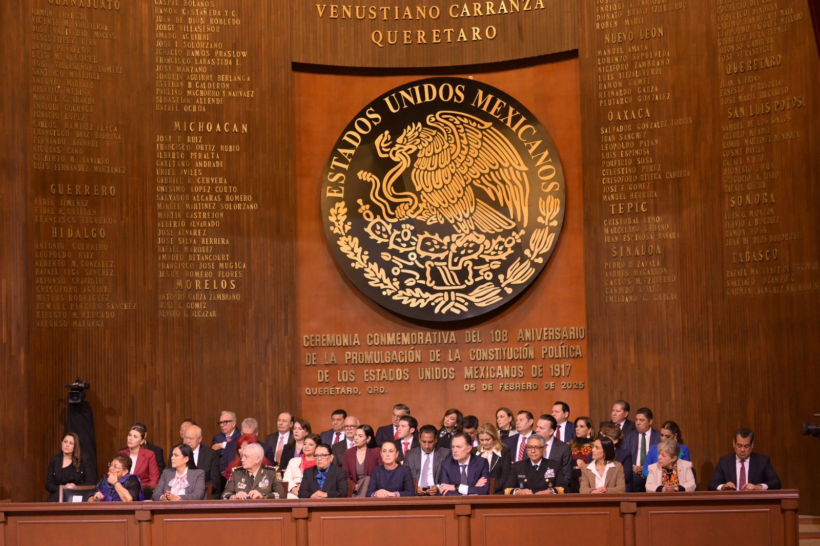 Querétaro, Qro..- La gobernadora de Veracruz, Rocío Nahle García, participó en la conmemoración del 108° Aniversario de la Promulgación de la Constitución Política de los Estados Unidos Mexicanos de 1917, ceremonia encabezada por la presidenta Claudia Sheinbaum Pardo.