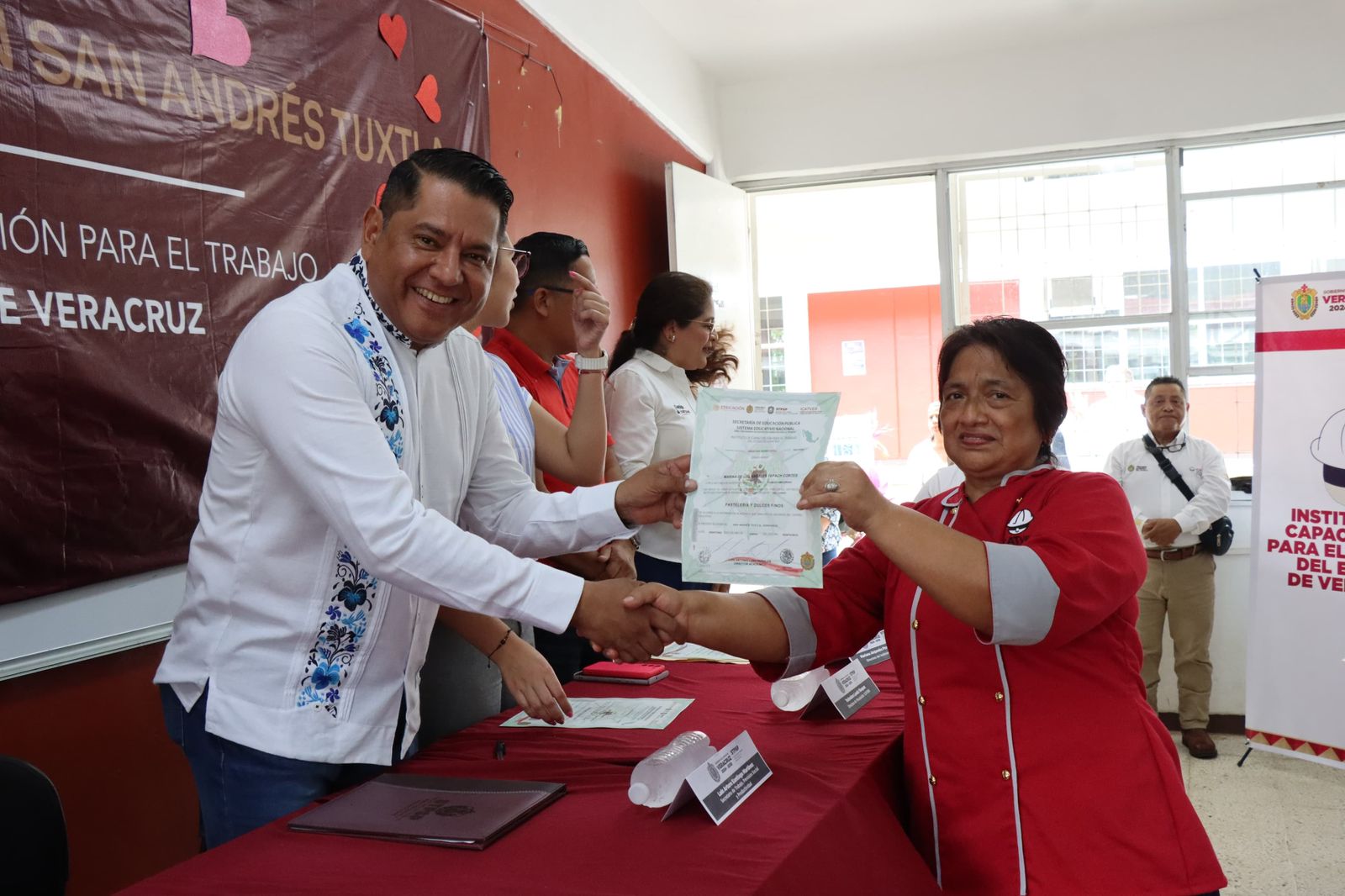 La entrega de diplomas a 50 egresados del Instituto de Capacitación para el Trabajo del Estado de Veracruz, con el objetivo de mejorar sus habilidades laborales y ampliar sus oportunidades de empleo.