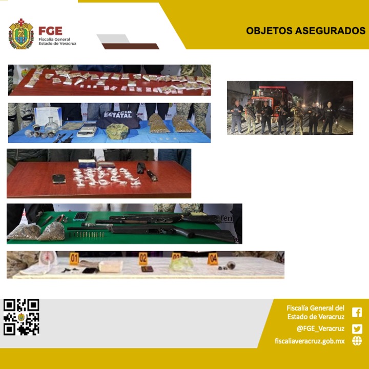 Xalapa, Ver.-La Fiscalía General del Estado, informa los resultados de los operativos llevados a cabo en diversas regiones del Estado, del día 10 al 16 de marzo del año en curso, en el marco de la Nueva Estrategia de Seguridad Nacional, con el trabajo coordinado de la Policía Ministerial, el Ejército Mexicano, la Secretaría de Marina, la Guardia Nacional y la Secretaría de Seguridad Pública Estatal.