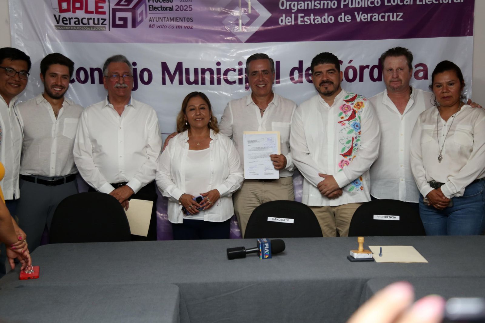 Córdoba, Ver.,-El empresario Manuel Alonso Cerezo se registró este jueves como candidato de Morena y el PVEM a la presidencia municipal de Córdoba. Acompañado por su familia, liderazgos del movimiento y simpatizantes, dejó claro que su compromiso es con el pueblo y con los principios de la Cuarta Transformación.