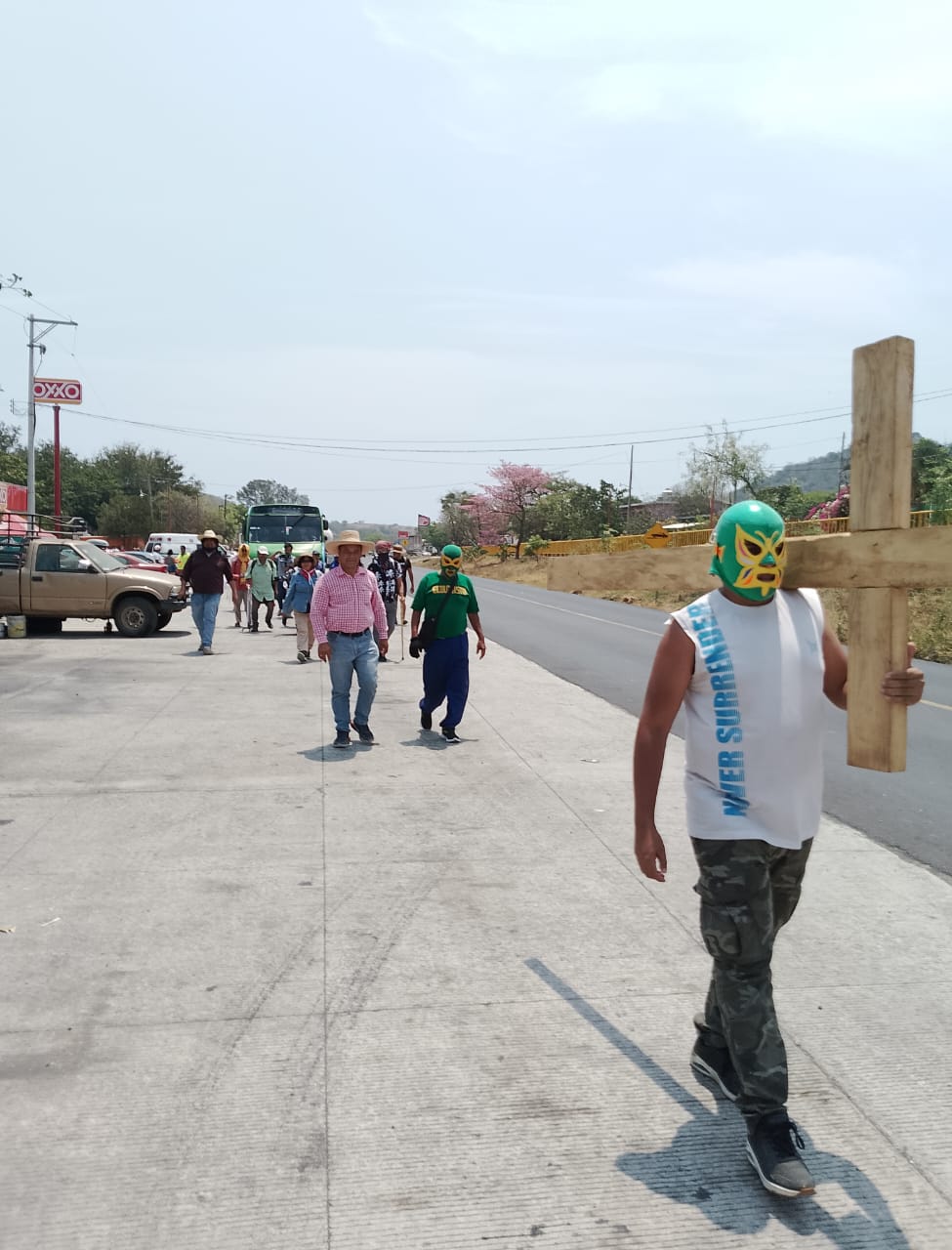 Es de señalar que en este último tramo del Vía Crucis que va de la localidad de El Viejón a Laguna Verde, integrantes del Movimiento de Resistencia Civil La Leyenda de Chucho El Roto se unió a esta caminata.