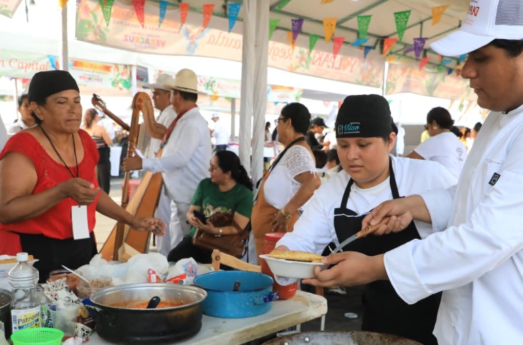 De la región Olmeca, locales y visitantes degustaron platillos como los tamales de chanchamito, las memelas con carne de Chinameca y el mole de quelite. De la región de Los Tuxtlas, la cocina afrodescendiente con los tacos de mondongo asado, los buñuelos de camote y malanga, así como los tegogolos.
