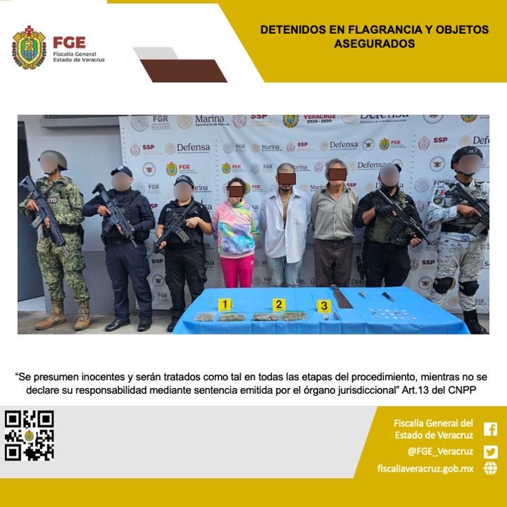 Respetando sus derechos humanos y el debido proceso, los detenidos fueron presentados ante el fiscal correspondiente de la Fiscalía Regional Xalapa para que defina su situación jurídica.
