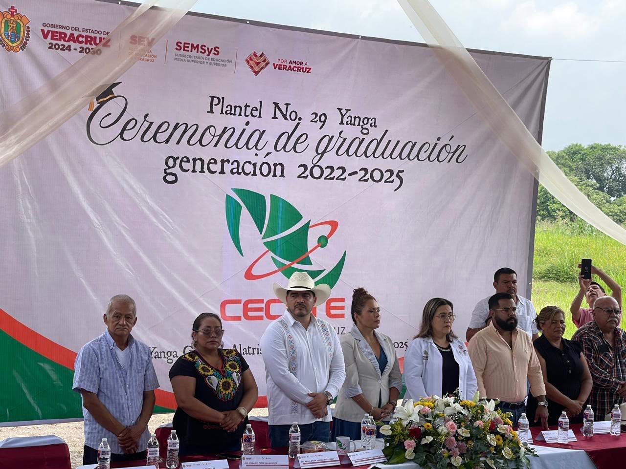 Yanga, Ver.- En un emotivo evento de graduación, el diputado federal Zenyazen Escobar García asistió como padrino de generación de los estudiantes egresados del Colegio de Estudios Científicos y Tecnológicos del Estado de Veracruz (CECYTEV) No. 29, ubicado en el municipio de Yanga.