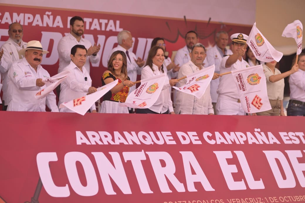 Coatzacoalcos, Ver.-Con un llamado a la corresponsabilidad ciudadana, la gobernadora Rocío Nahle García dio el banderazo de arranque a la Campaña Estatal de Lucha contra el Dengue, cuyo objetivo es alcanzar la meta de cero casos en Veracruz.