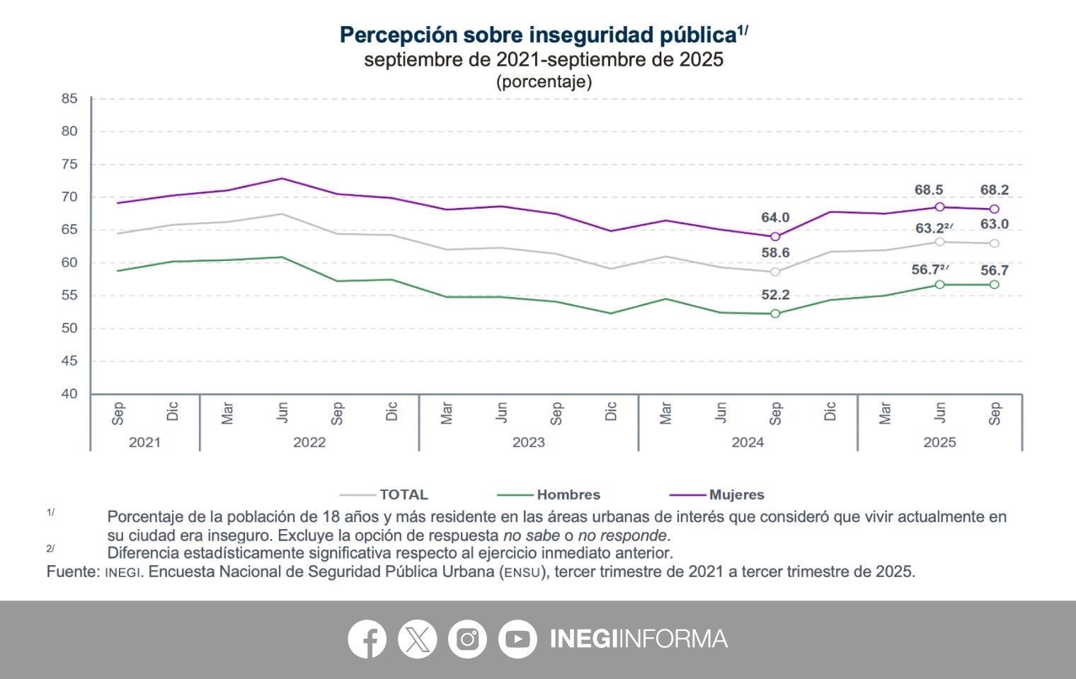 En la presentación trimestral que mostró la ENSU que abarca de junio a septiembre, mostró que en Veracruz puerto al menos 70 % de las personas mayores de edad percibieron a este lugar como inseguro.