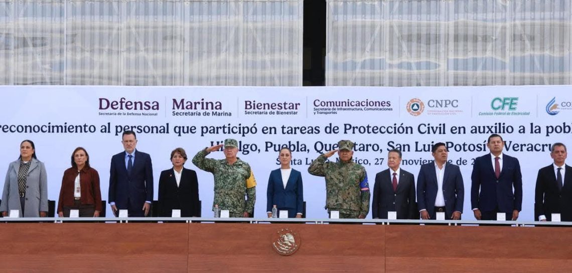 También se hizo un reconocimiento puntual al funcionariado de la Secretaría de Bienestar, la Coordinación Nacional de Protección Civil, la Comisión Federal de Electricidad, Comisión Nacional del Agua y otras que, desde sus áreas de responsabilidad, operaron centros de mando, coordinaron rutas de apoyo, garantizaron el suministro de insumos y mantuvieron comunicación permanente con los municipios afectados.