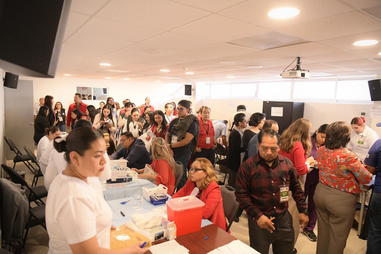 Xalapa, Veracruz, 1 de diciembre.- La Fiscalía General del Estado, encabezada por Verónica Hernández Giadáns, por medio del Instituto de Formación Profesional en coordinación con la Unidad de Género y la Clínica Hospital Xalapa del ISSSTE, gracias a la gestión de Martha Josefina Aguilar Nájera, encargada del Programa de VIH, en el marco del Día Mundial de la lucha contra el VIH y Sida, llevaron a cabo la ”Feria de la salud”, en la que personal de la institución recibió una charla educativa, de sensibilización y prevención en materia de cuidados de la salud, además de participar en una jornada intensiva en la cual se aplicaron vacunas contra el COVID, la influenza, hepatitis y tétanos, así como detecciones rápidas de VIH y sífilis, papanicolau, exploración de mamas, prueba de glucosa y antígeno prostático, dotación de métodos anticonceptivos y de limpieza dental, entre otros.Está jornada con gran afluencia se implementó con el objetivo de promover el cuidado de la salud, informar sobre los beneficios de detecciones tempranas de enfermedades para el debido cuidado y la calidad de vida, así como para evitar toda clase de discriminación y estigmatizaciones hacia las personas que viven con estas enfermedades.