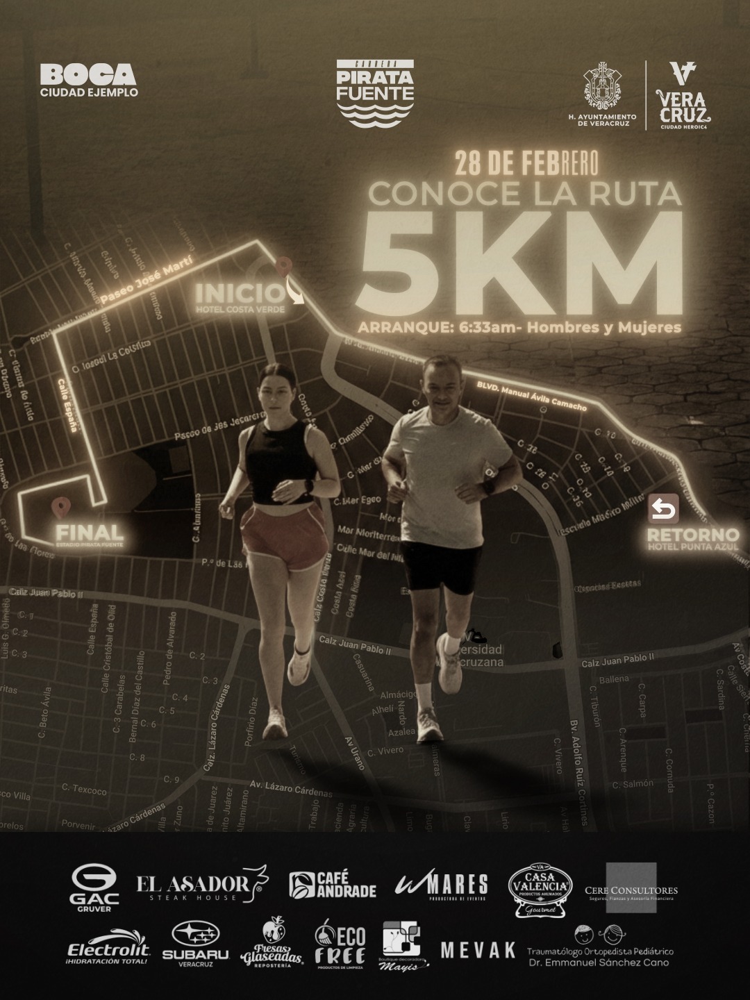 (Boca del Río, Ver., a 3 de febrero de 2026).- La emoción está en marcha tras la revelación oficial de la ruta “Del Mar al Pirata”, un evento deportivo que promete convertirse en una vivencia inolvidable para corredores locales y visitantes; esta justa atlética combinará el desafío físico con escenarios emblemáticos del puerto de Veracruz.