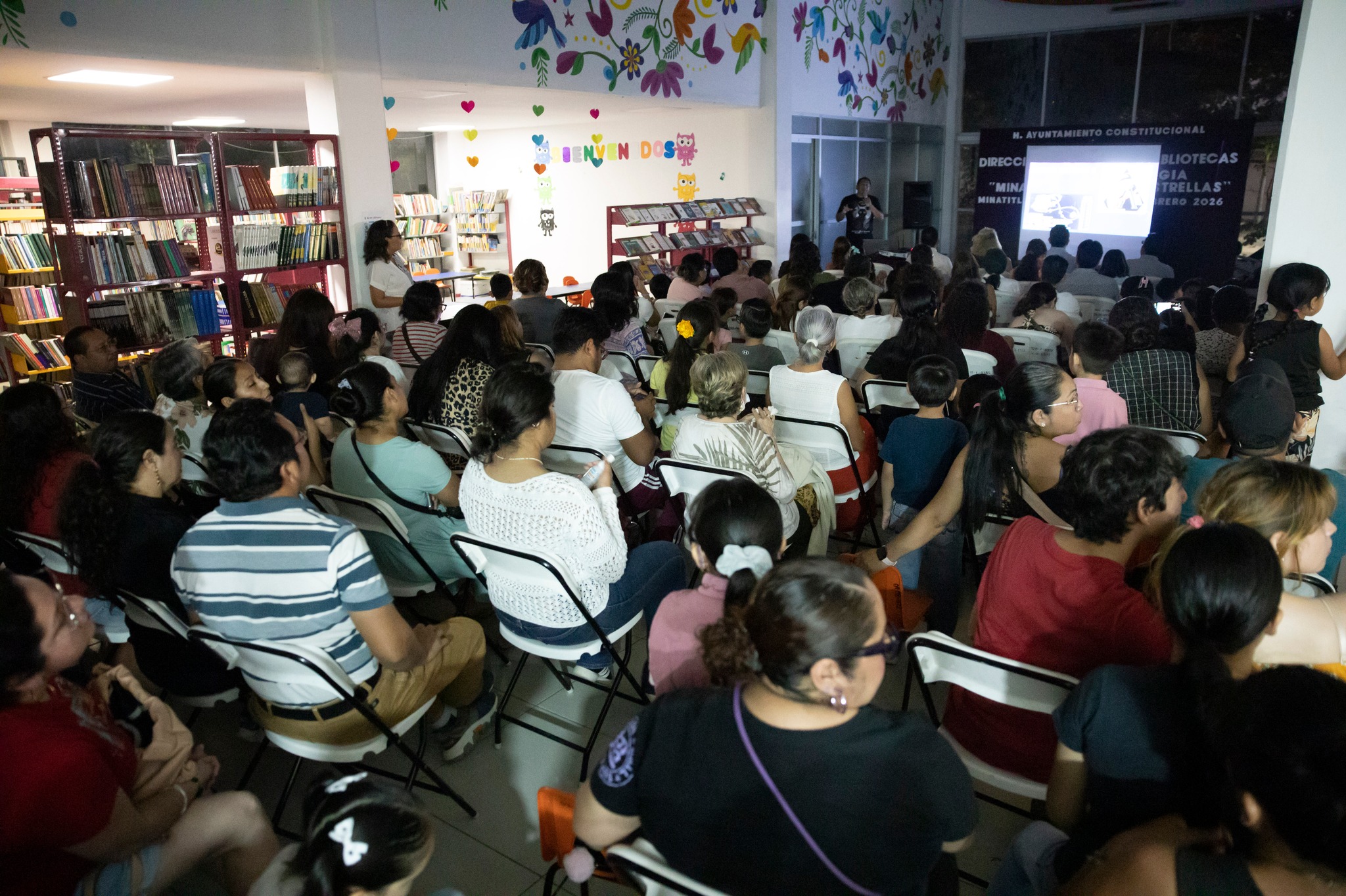 Minatitlán, Veracruz. 1 de marzo de 2026, El alcalde Guillermo Reyes Espronceda asistió a la Biblioteca Municipal “Viriato da Silveira”, donde se llevó a cabo una plática sobre la Luna, impartida por Juan Carlos Torres Ventura, integrante de la Sociedad Astronómica de Minatitlán.