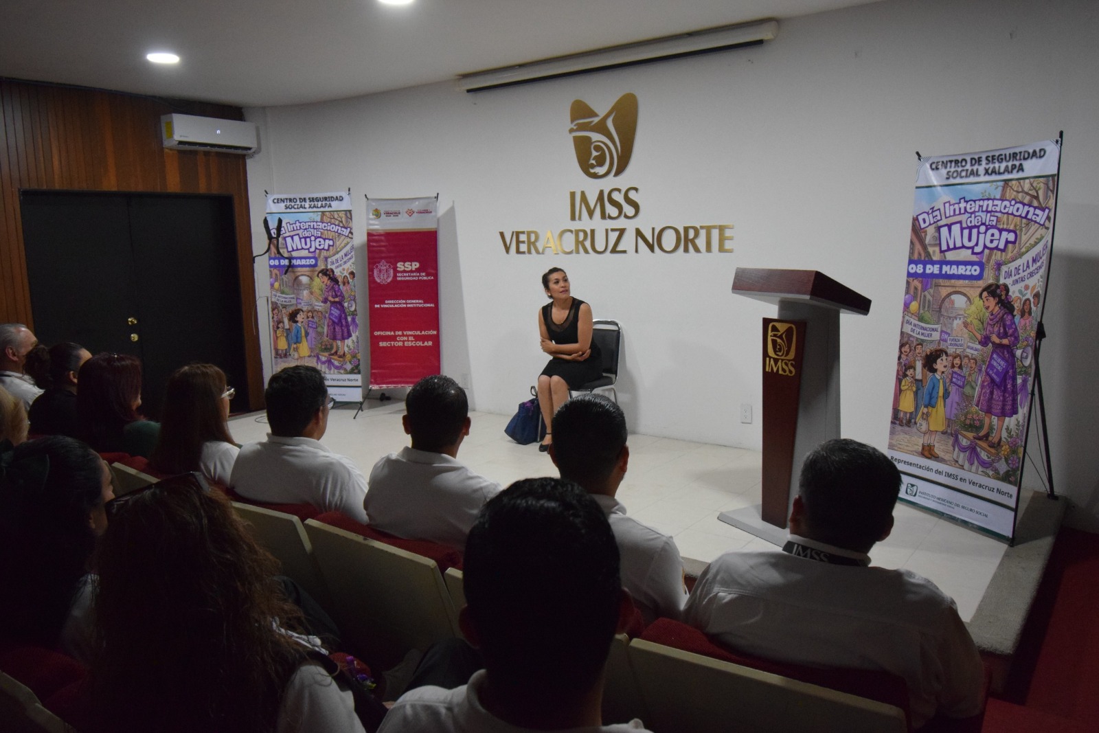 Previo a la presentación del monólogo, la titular del IMSS en Veracruz Norte, doctora Edith Jiménez Martínez, expresó: “reafirmamos nuestro compromiso con la igualdad sustantiva, el respeto a la dignidad humana y la construcción de entornos laborales libres de violencia y discriminación. Hablar de derechos, implica garantizarlos”.