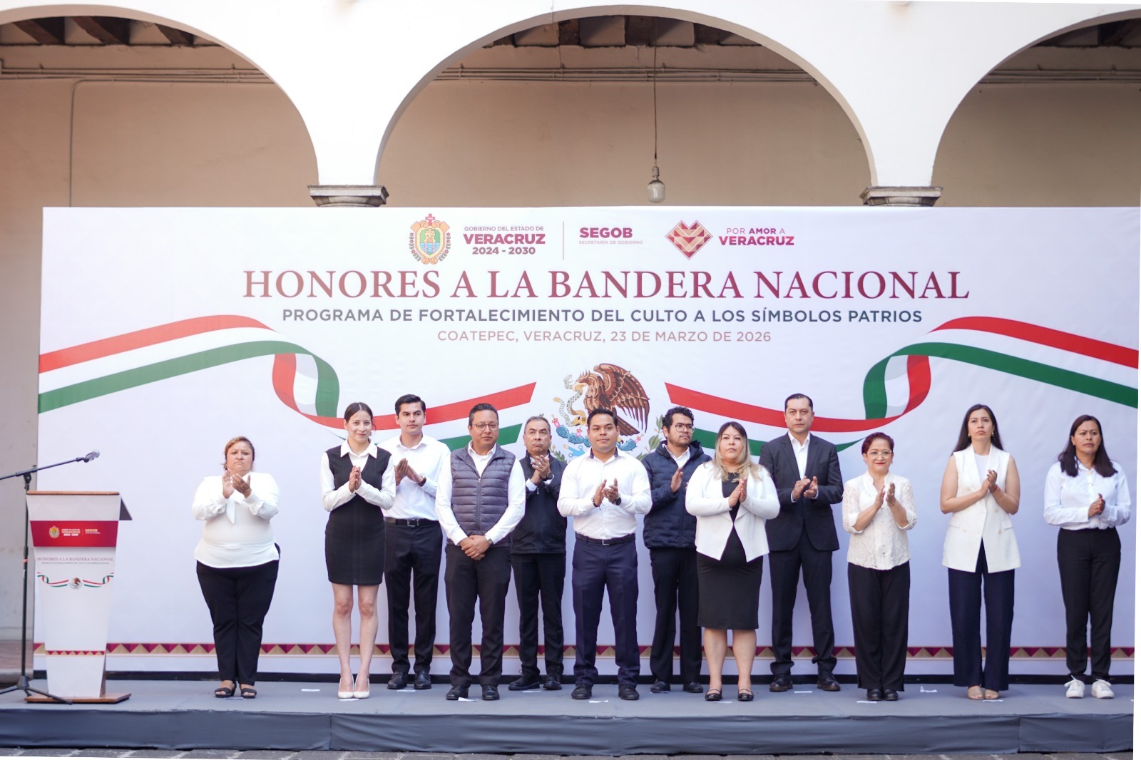 COATEPEC, VER.- 23 DE MARZO.- Durante los Honores a los símbolos patrios, este lunes 23 de marzo, ediles y funcionarios del H. Ayuntamiento de Coatepec, acompañados del Lic. Elías Hernández Landa, representante de la Coordinación de Promoción de los Valores Cívicos y Culturales, se le rindió un merecido Homenaje a la poeta, dramaturga y activista política coatepecana Francisca García Battle, “Pacona” (1905 – 1953).