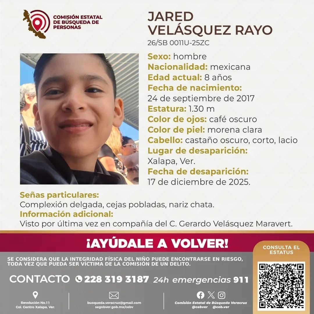 «Buenos días, mi nombre es Raziel Yolatl Rayo Olivares, no soy de hacer esta clase de publicaciones pero gracias a los que se tomaron un minuto para compartir y enviar mensaje preguntando por Jared, desafortunadamente su padre el señor Gerardo Velázquez Maravert, líder del sindicato magisterial #SIMVE, aprovechó el periodo vacacional de diciembre que le tocaba Convivencia con mi niño, por lo que el pasado domingo debió regresarme al niño pero ya no lo hizo, tal como se establece en el expediente DONDE YO TENGO LA GUARDA Y CUSTODIA 1072/2022/IV del Juzgado Octavo Familiar de Xalapa.