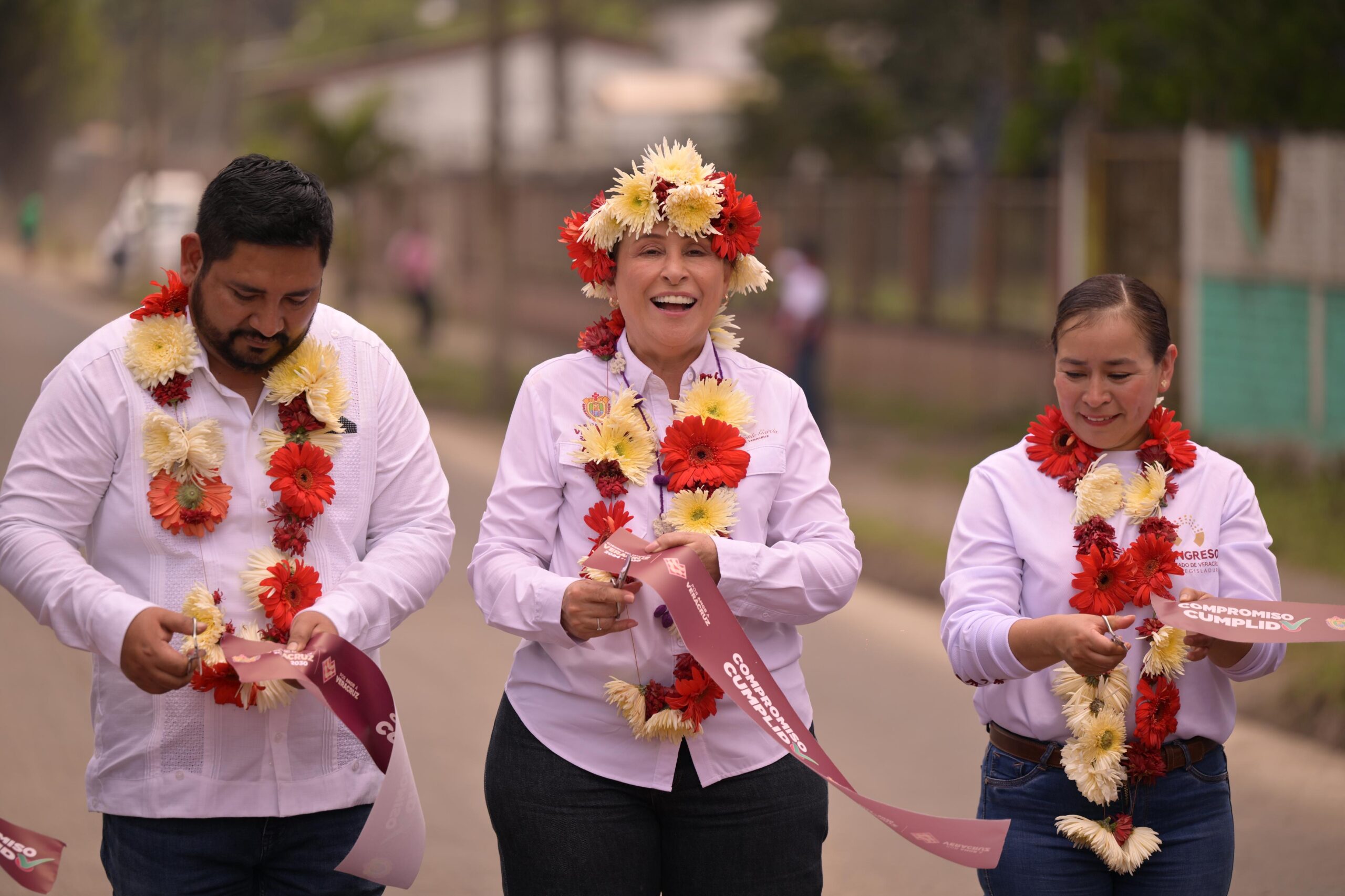 Tezonapa, Ver., miércoles 15 de abril de 2026.- La gobernadora Rocío Nahle García inauguró la pavimentación del tramo Tezonapa–Motzorongo, de aproximadamente 5 kilómetros, ejecutada por la Secretaría de Infraestructura y Obras Públicas (SIOP) y clave para el transporte de caña, café y hule en la región.